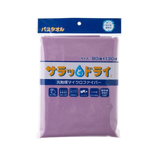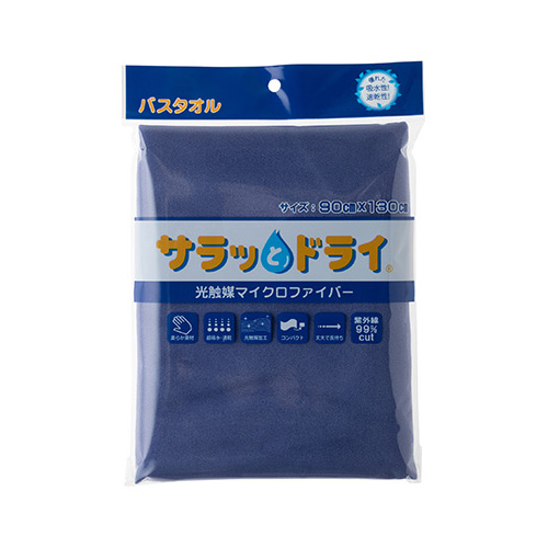 「サラッとドライ 無地バスタオル 80cm×140cm イタリアンブルー ASK-1L-IBL」は、既存の90×130cmよりさらに使いやすくなった新サイズのバスタオルです。「サラッとドライ」は、抜群の吸水性に光触媒加工を施したタオルです。薄くて軽く、かさばりません。高速で大量の水分を吸収。驚きの速乾性で、冬場や梅雨時の洗濯のストレスもありません。光触媒により抗菌・消臭性に優れています。砂が付きにくいので海水浴にもオススメです。