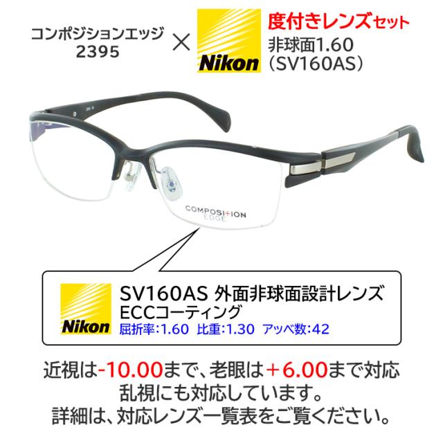 商品について 注文後レンズ加工商品(5〜7営業日以内の発送) ご注文のタイミングによりまして、欠品でご用意できない場合もございます。 あらかじめご了承お願いいたします。 【レンズにつきまして】 ◆Nikon ニコン SV160AS 外面非球面設計レンズ(屈折率:1.60、比重:1.30、アッベ数:42) <高屈折率プラスチックレンズ> | |