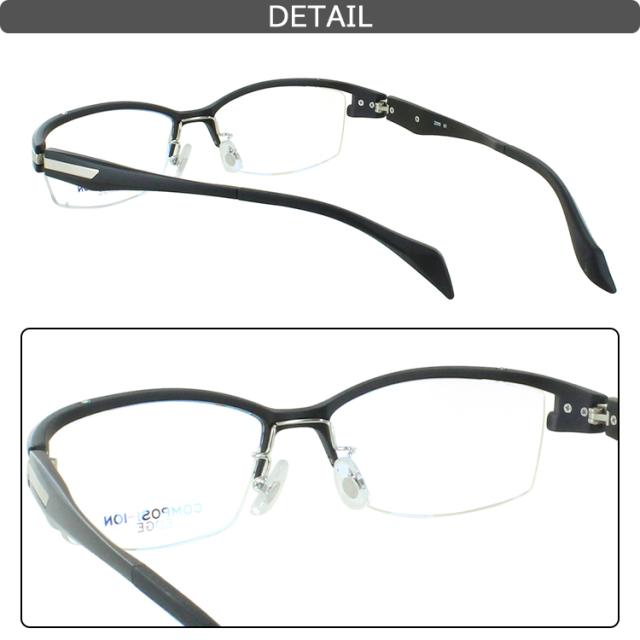度付き メガネ 度あり 度付きメガネ ハーフリム ウルテム素材 超弾性樹脂 メンズ 度入り 近視 乱視 遠視 老眼 度なし 伊達 薄型 非球面レンズ セット 2395 男性