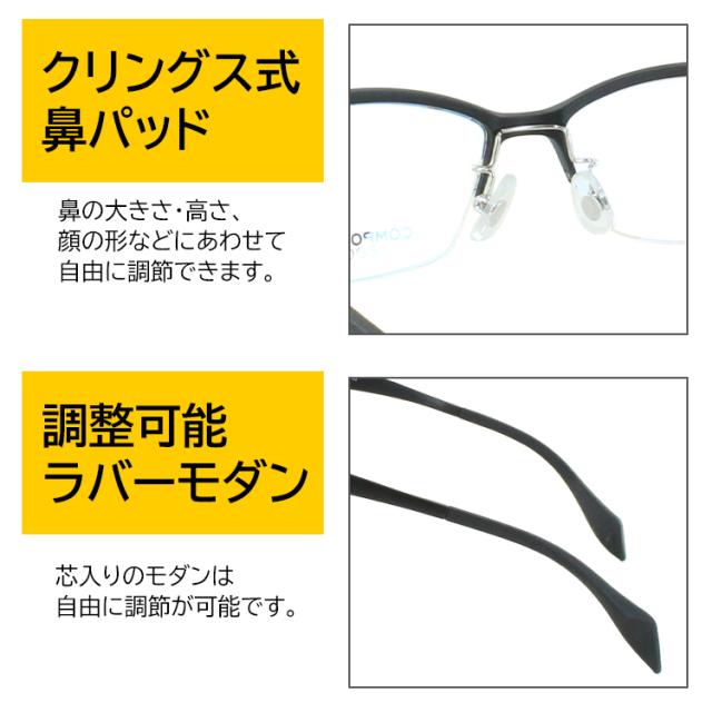 | 商品詳細 ウルテム素材 メガネフレーム 度付き 度なし メガネ 薄型 非球面レンズ セット エッジの効いたスタイリッシュなデザインで魅了! 超弾性樹脂 ウルテム素材のハーフリムメガネフレーム こちらはメンズ 男性向けです。 クリングス鼻パッドで調整が可能 モダン(耳掛け部分)も芯入りで調整可能なラバーモダン レンズはUVカット標準仕様で、傷つきにくいマルチハードコートの高品質な非球面薄型レンズとなっています。 近視 度数は-10.00まで、老眼度数は+6.00まで対応。 乱視にも対応しています。度なしの伊達メガネも対応。 詳細は、対応レンズ 一覧表をご覧ください。 | |