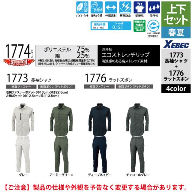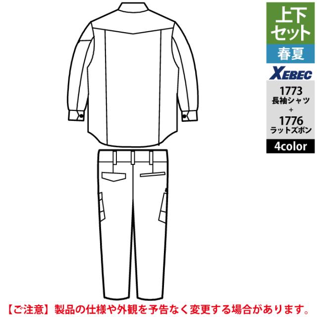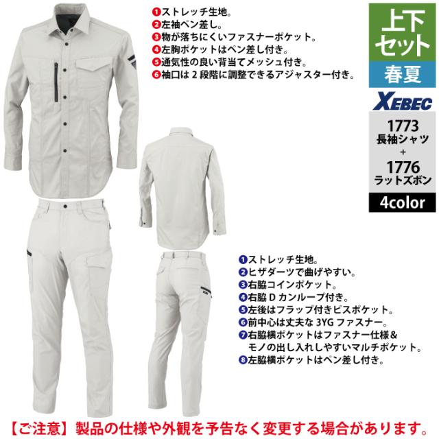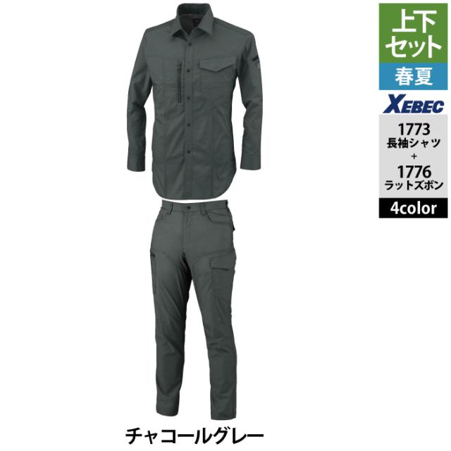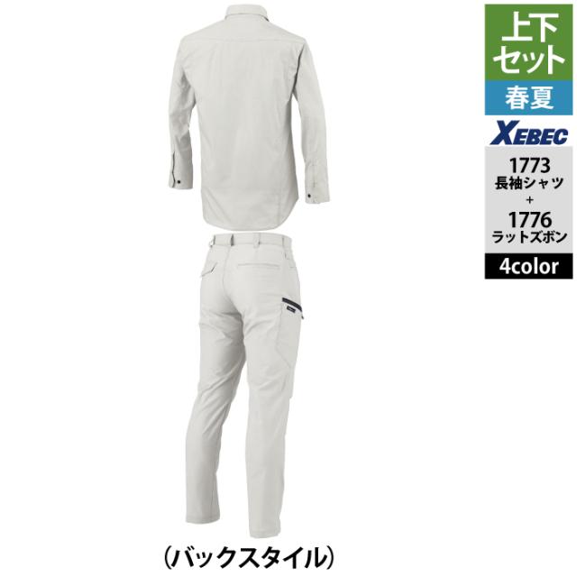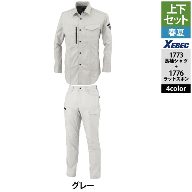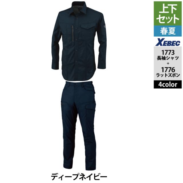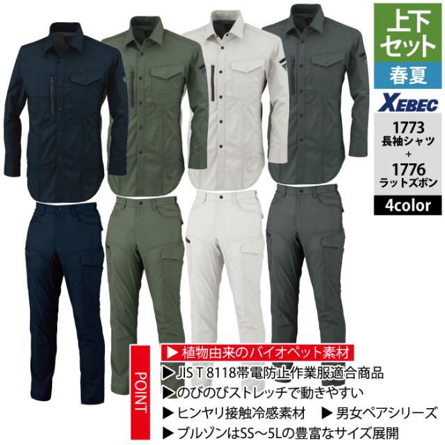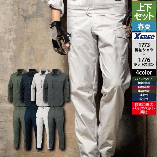 ジーベック XEBEC 作業服 上下セット 1773 長袖シャツS-3L と 1776 ラットズボン 70-100 春夏用 作業着 カーゴパンツ