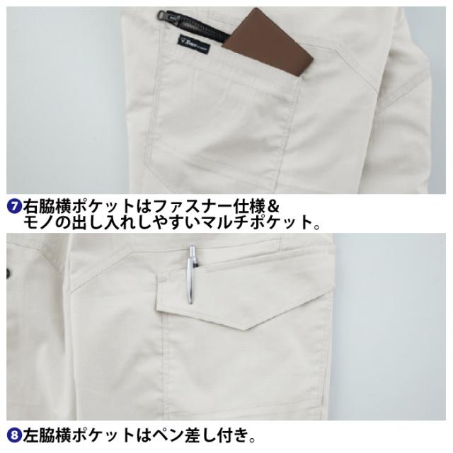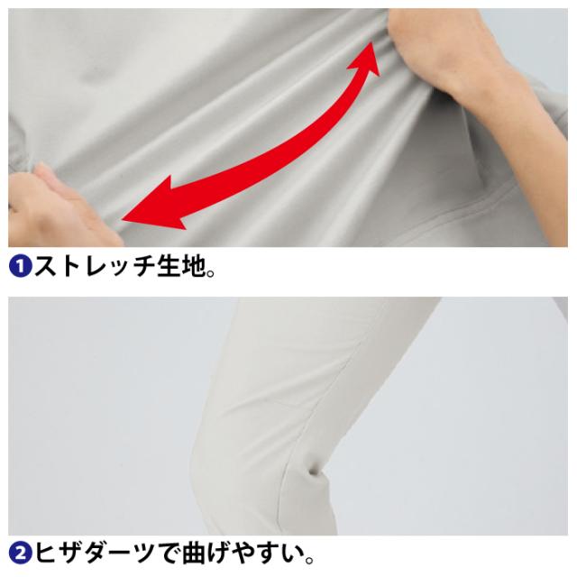◇機能:接触冷感。伸縮素材。帯電防止。速乾性。吸汗性。ストレッチ。左袖ペン差し。物が落ちにくいファスナーポケット。左胸ポケットはペン差し付。通気性の良い背当てメッシュ付き。袖口は2段階に調整できるアジャスター付き。