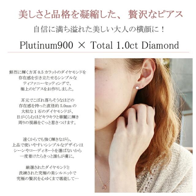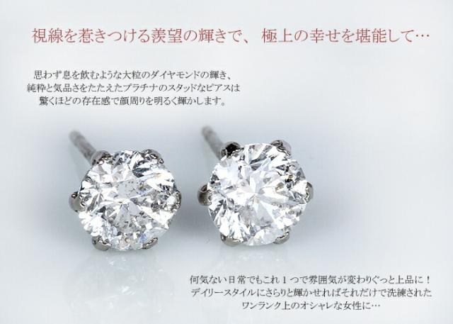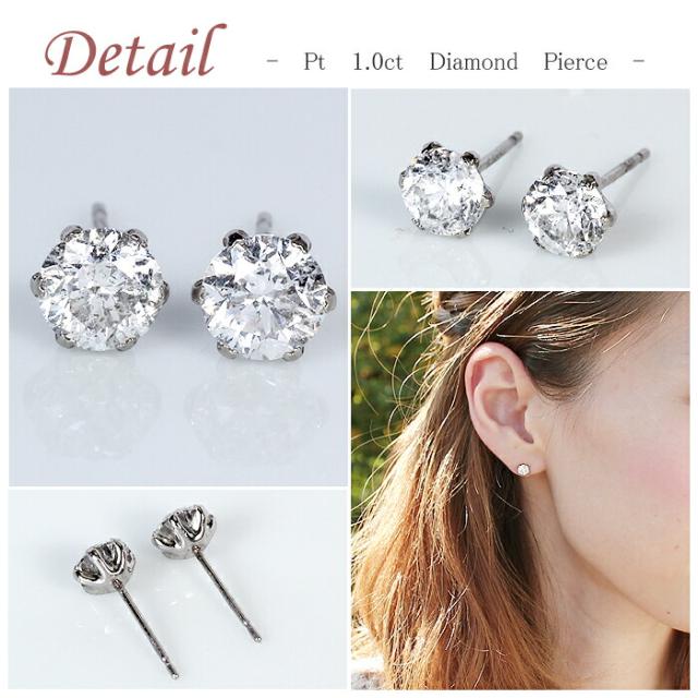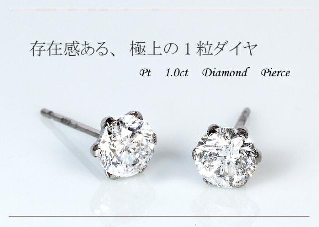 ピアス イヤリング ダイヤモンド 1ct プラチナ Pt 一粒 1粒 ソリティア 6本爪 6爪 スタッド レディース アクセサリー ジュエリー ギフト 188896 ダイヤ