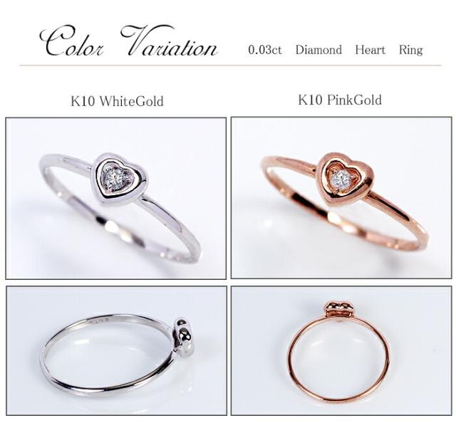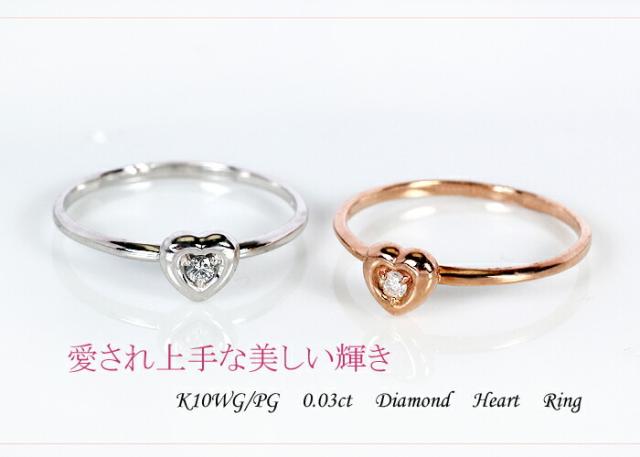 リング ダイヤモンド 0.03ct 10金 ホワイトゴールド ピンクゴールド K10 WG PG ハート レディース アクセサリー ジュエリー ギフト ダイヤ 206803