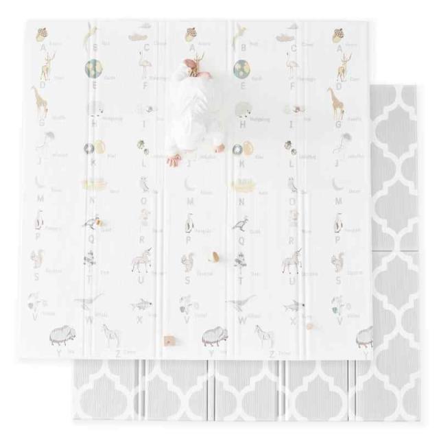 Fortella ベビーマット 折りたたみ プレイマット 赤ちゃん用 179.5x178x厚手1.5cm 防水 防音 滑り止め 両面 リバーシブル 知育 アルファベット IXPE 軽量 お昼寝マット リビング 出産祝い プレゼント 収納袋付き