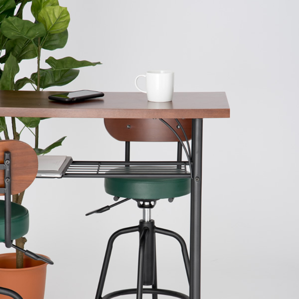 チェアの組立は上下を差し込むだけで簡単。 ■商品サイズ カウンターテーブル:W1000×D350×H905mm カウンターチェア:425×425×H840〜940mm ■商品スペック・材質など カウンターテーブル フレーム/棚板:スチール、エポキシ樹脂粉体塗装 天板:突板合板(ウォールナット柄)ラッカー塗装 カウンターチェア フレーム:スチール、エポキシ粉体塗装 背もたれ:合板ブラウン(ウォールナット柄)ラッカー塗装 座面:ウレタンフォーム+合板+PVC ガスシリンダー昇降回転機能付き ■組立 お客様組立品 ※写真はメーカー様のカタログ等から掲載させていただいております。 実物の商品と写真の色が若干写真写り等により異なる場合がありますので、ご注意くださいませ。 万が一の際でございましても返品はお受けいたしかねます。 ※お客様組立て品につきましては、組み立て後に不良の連絡をされても対応ができません。 組み立て前にパーツに不良・傷等がないか、必ずご確認下さいますようよろしくお願い申し上げます。 ※記載は商品仕様の一部です。仕様説明不足等の理由での返品はできません。特に適合等は必ずご確認ください。
