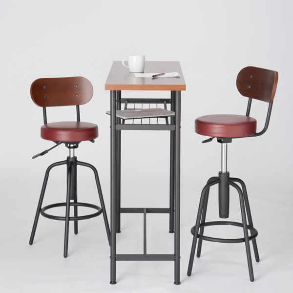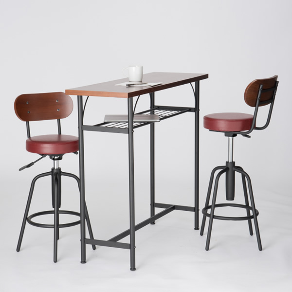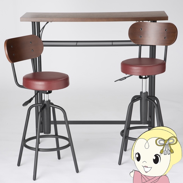 カンターテーブルセット チェア2脚 3点 セット テーブル 椅子 カウンター チェア バー ダイニング レトロ ワインレッド