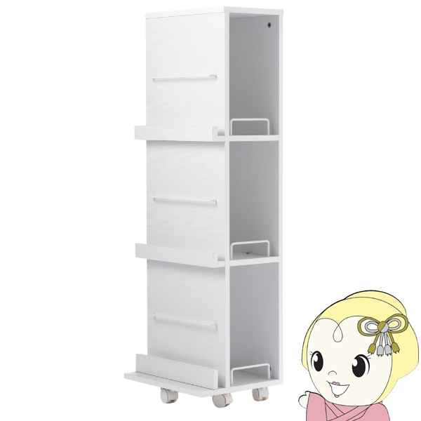 マガジンラック 回転コレクションラック 3段 ブックラック 本棚 雑誌 ディスプレイラック キャスター付き おしゃれ ホワイト