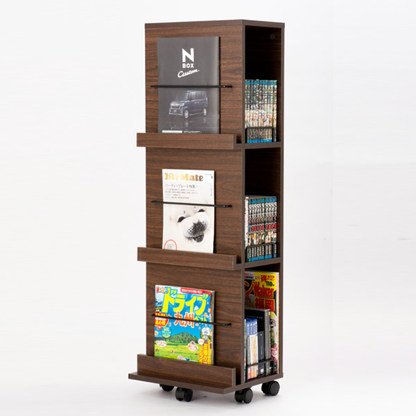 パンフレットや雑誌、コミック本やDVDなど、幅広いサイズのものをスマートに収納できます。