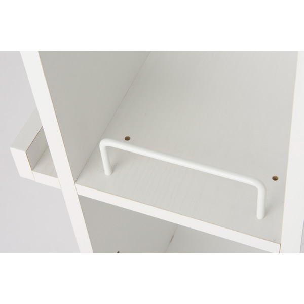 ・1段の高さは32cmと広めに設計されているため、A4ファイルや雑誌も楽々収納 ・横の収納スペースには転落防止バー付き。本などのサイズに合わせて4段階に調整可能。 ■カラー ホワイト ■商品サイズ W350×D290×H1080mm ■商品重量 12.35kg ■商品スペック・材質など 板材:パーティクルボード、強化プリント紙貼り 仕切り部品:スチール(エポキシ樹脂粉体塗装) エッジ部:PVC、キャスター5個付き(2個ストッパー付き) ■原産地 中国 ■組立 お客様組立品 ※写真はメーカー様のカタログ等から掲載させていただいております。 実物の商品と写真の色が若干写真写り等により異なる場合がありますので、ご注意くださいませ。 万が一の際でございましても返品はお受けいたしかねます。 ※お客様組立て品につきましては、組み立て後に不良の連絡をされても対応ができません。 組み立て前にパーツに不良・傷等がないか、必ずご確認下さいますようよろしくお願い申し上げます。 ※記載は商品仕様の一部です。仕様説明不足等の理由での返品はできません。特に適合等は必ずご確認ください。