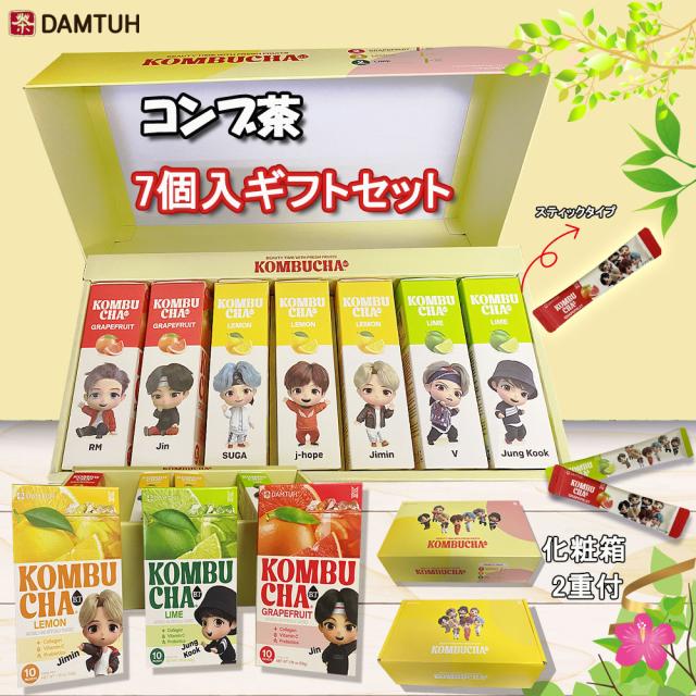 【ダムト】コンブ茶 BTS 7個入ギフトセット 350g 英語版★ 韓国人気アイドル レモン ライム グレープフルーツ BTS ばんたん 少年団 コンブチャ こんぶ 韓国お茶 ギフト お歳暮 お中元