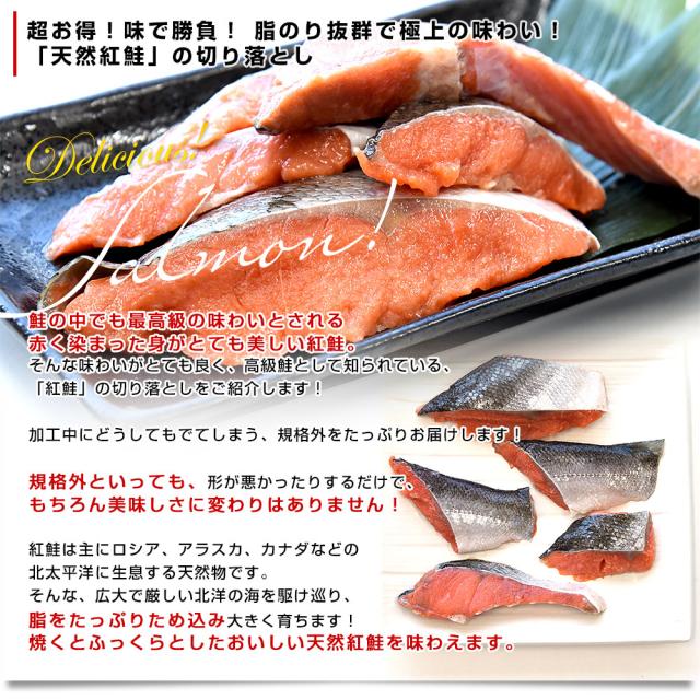 北海道より直送 北海道加工 訳あり 天然紅鮭の切り落とし 合計900g(300g×3入り)送料無料 紅鮭 鮭 さけ ※クール冷凍便