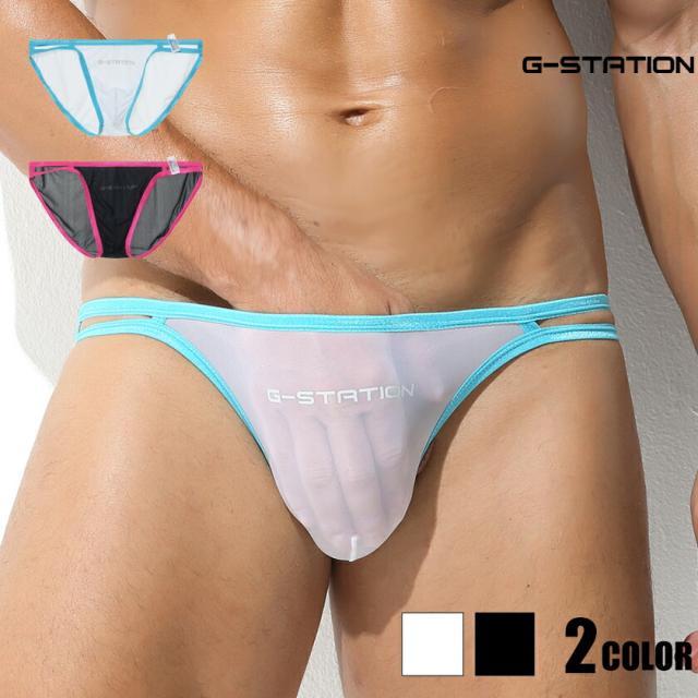 メンズビキニ ブリーフ G-Station/ジーステーション シルクスキンストレッチ カラーパイピング サイドダブル ビキニ 軽量 シースルー メンズ 男性下着 透け メンズビキニ フルバック