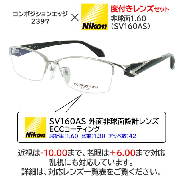 商品について 注文後レンズ加工商品(5〜7営業日以内の発送) ご注文のタイミングによりまして、欠品でご用意できない場合もございます。 あらかじめご了承お願いいたします。 【レンズにつきまして】 ◆Nikon ニコン SV160AS 外面非球面設計レンズ(屈折率:1.60、比重:1.30、アッベ数:42) <高屈折率プラスチックレンズ> | |