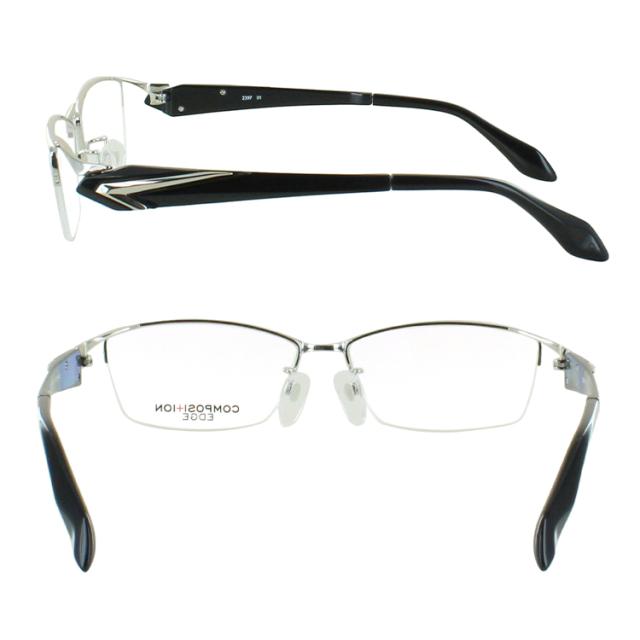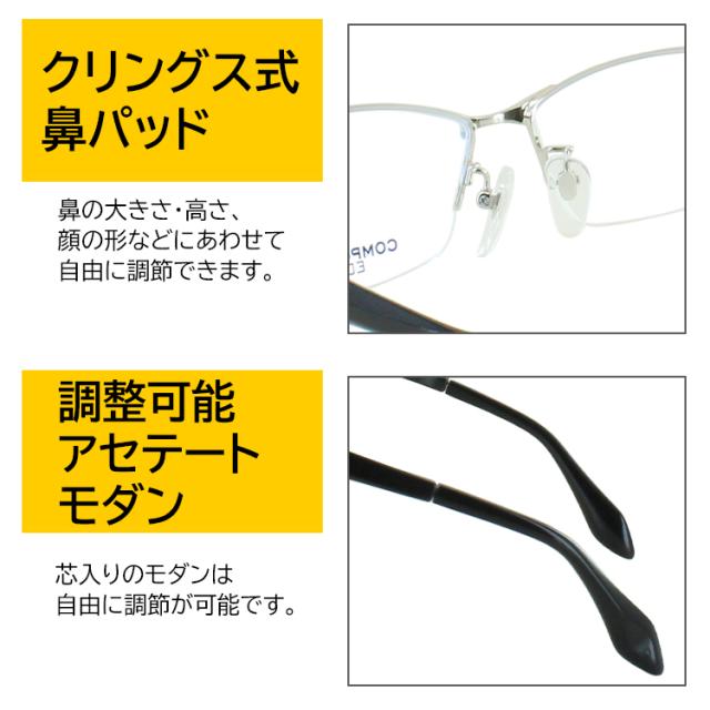度付き メガネ 度あり 眼鏡 ハーフリム メタル ウルテム素材 コンビフレーム メンズ 度入り 近視 乱視 遠視 老眼 度なし 伊達 薄型 非球面レンズ セット 2397