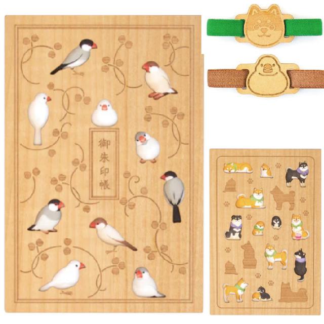 [バンドセット] 御朱印帳 文鳥 柴犬 木製 セット販売 クルーシャル B6変型判 120×180mm 36ページ 高級 スタンプ帳 アルバム帳 透かし彫り かわいい 美しい 芸術的 ギフト プレゼント カジュアル お出かけ ご朱印 神社 お寺 寺院 手帳 参拝 ノート 小物 グッズ おしゃれ