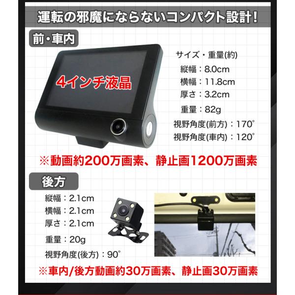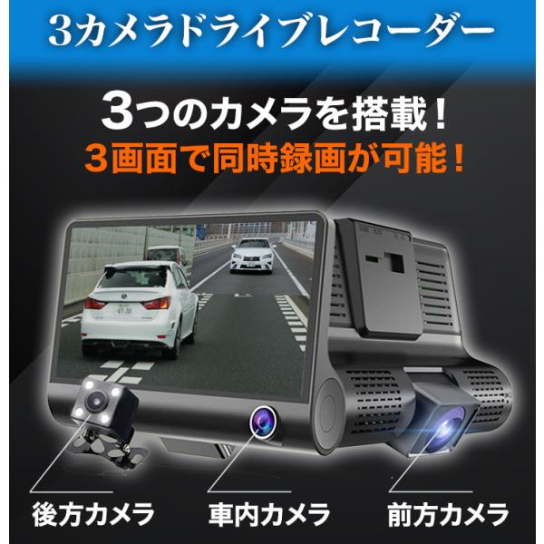 ドラレコ フルHD高画質 衝撃録画 駐車監視 快適生活「3カメラドライブレコーダー」ノイズ対策済 常時 小型 上書き録画