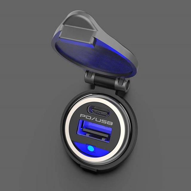 シガーソケット変換アダプタ USB Type-A Type-C 各1ポート DC-PD20W 自動判定 アンビエントライト付 12V/24V車兼用