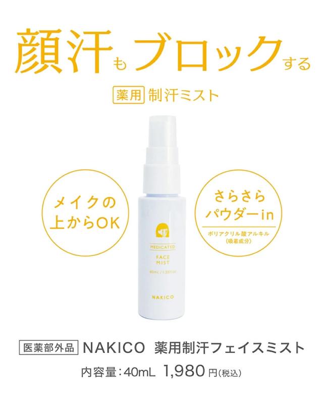 NAKICO ナキコ 薬用 フェイスミスト 40ml 医薬部外品 (メール便送料無料) 制汗 顔汗 メイク崩れ 制汗ミスト ボディケア デオドラント 汗対策 汗ケア テカリ