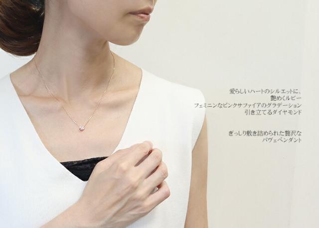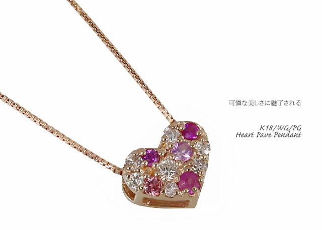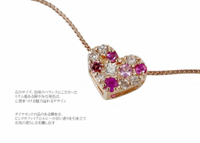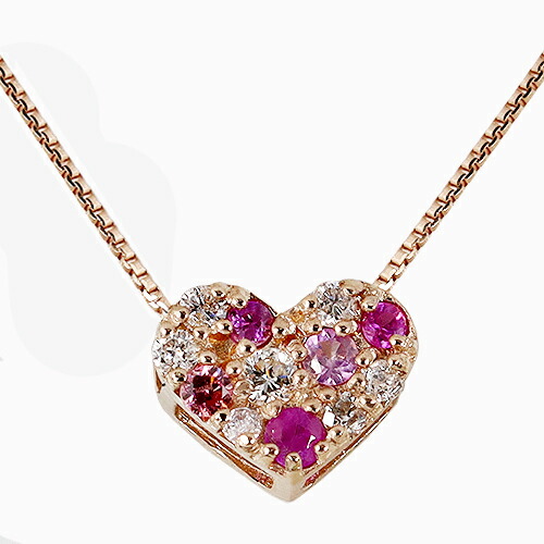 ペンダント ネックレス ダイヤモンド ルビー ピンクサファイア 18金 K18 台座 K10 チェーン ハート パヴェ パべ レディース アクセサリー ジュエリー ギフト ダイヤ 65562