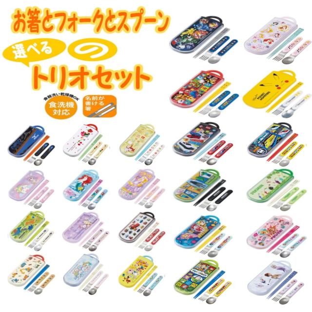 トリオセット こども スプーン フォーク お箸 キッズ スケーター 食器 キャラクター かわいい 食事 幼稚園 保育園 幼児 お弁当 カトラリー ランチ 運動会 遠足 行楽 ディズニー シンプル