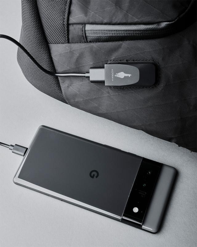 | 背面コンパートメント必需品を持ち運ぶために設計されています。また12.9inchのiPadもすっぽり収まる余裕のサイズ感を備えています。 | USB-Cポートを搭載。バッテリーを出さずにスマートに充電 | |