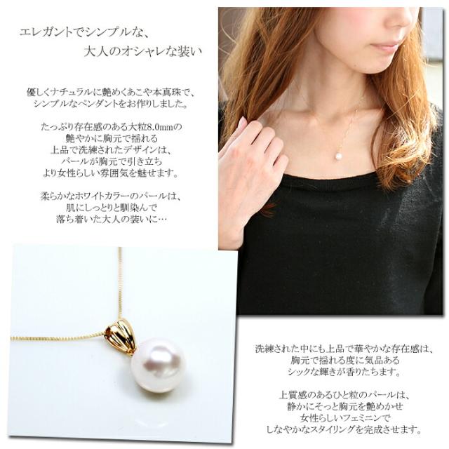 ペンダント ネックレス あこや 本真珠 パール 8mm 18金 K18 一珠 1珠 レディース アクセサリー ジュエリー ギフト 69700