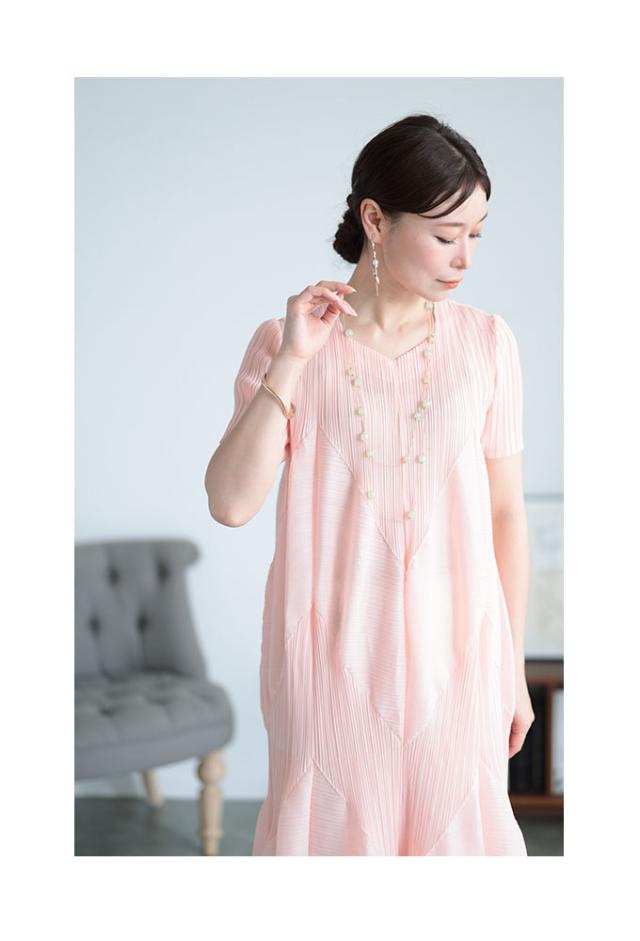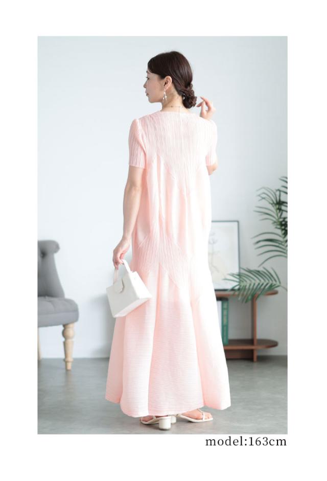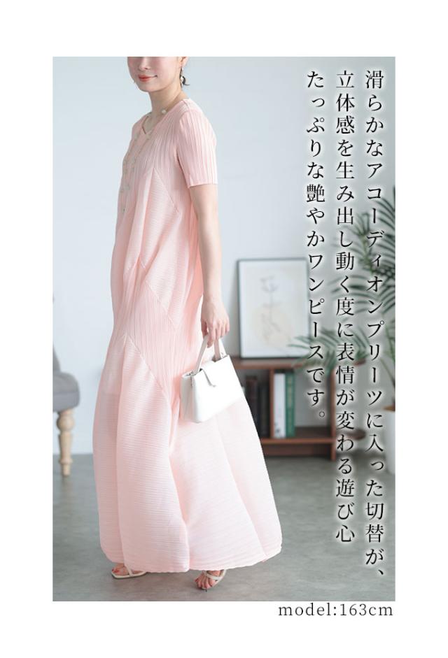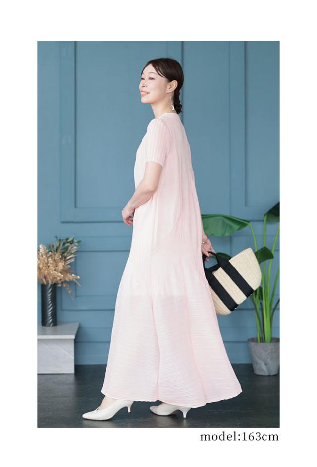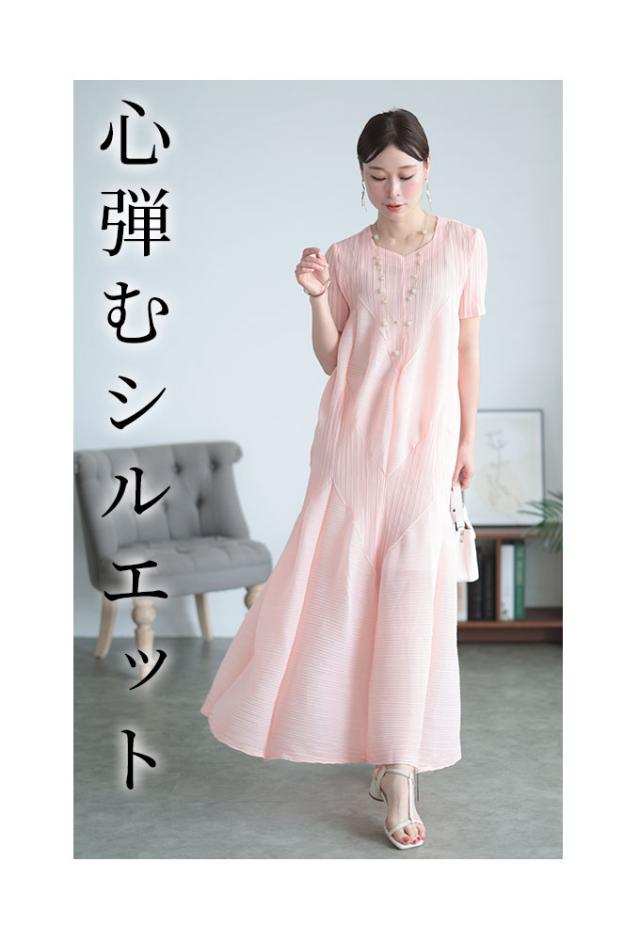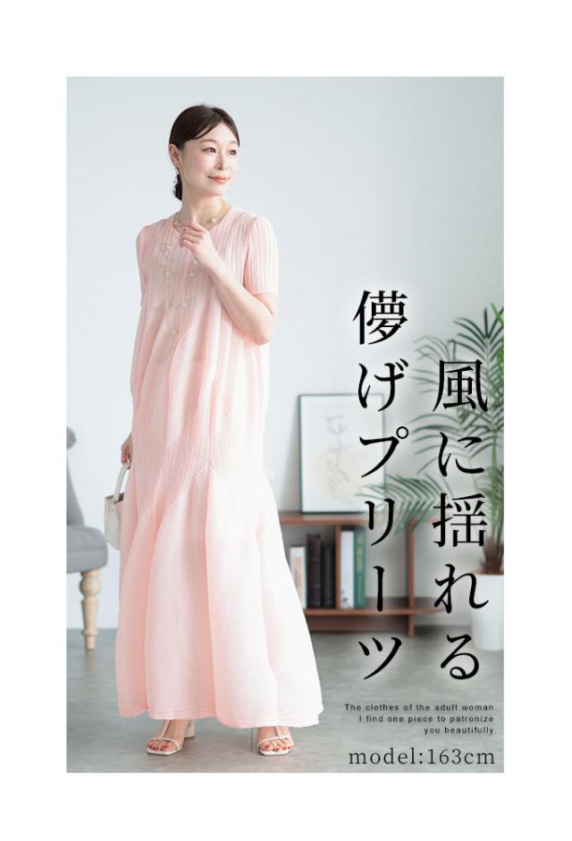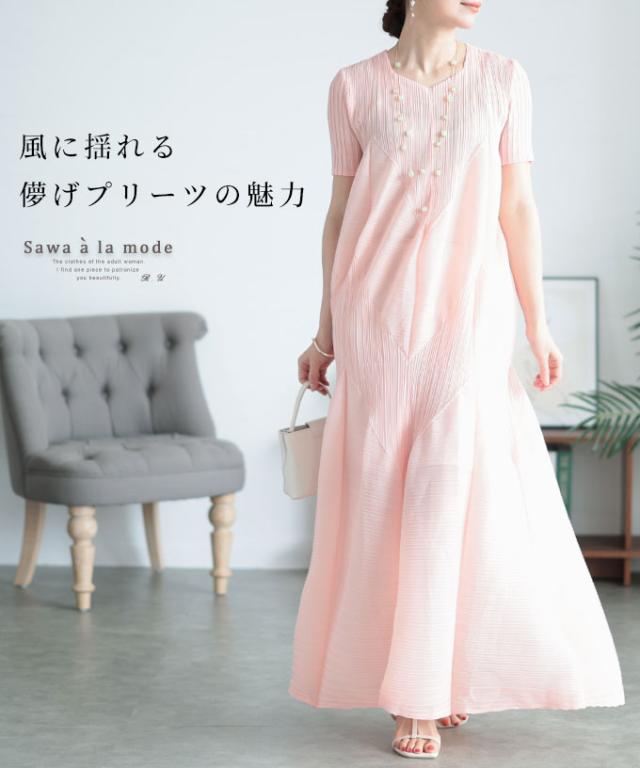 春新作 風に揺れる儚げプリーツのロングワンピース レディース ファッション ワンピース ワンピ ピンク 半袖 ロング丈 足首丈 大人可愛い 40代 レディースファッション 50代女性 ファッション 60代 ミセスファッション サワアラモード sawaalamode otona mode-9614