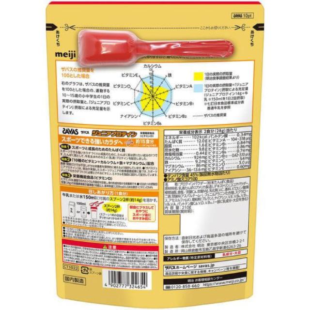 約15食分 明治 ジュニア キッズ ザバス ジュニア プロテイン ココア味 SAVAS たんぱく質 ホエイプロテイン 部活 成長 リカバリー 送料無料 meiji 2631126