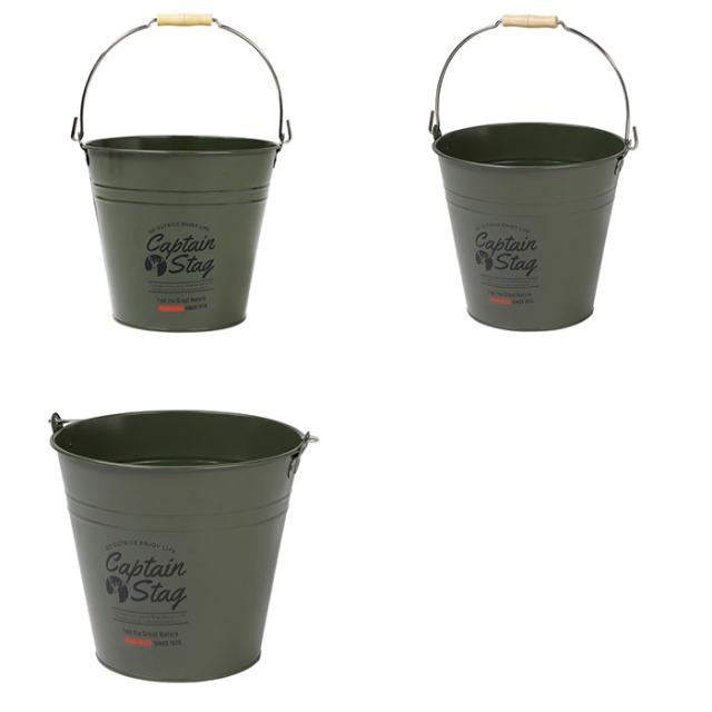 キャプテンスタッグ メンズ レディース CS スチールバケツ10L アウトドア用品 キャンプ 木柄付ハンドル ブラック 黒 カーキ 送料無料 CAPTAIN STAG UM1619 UM1620 UM1621