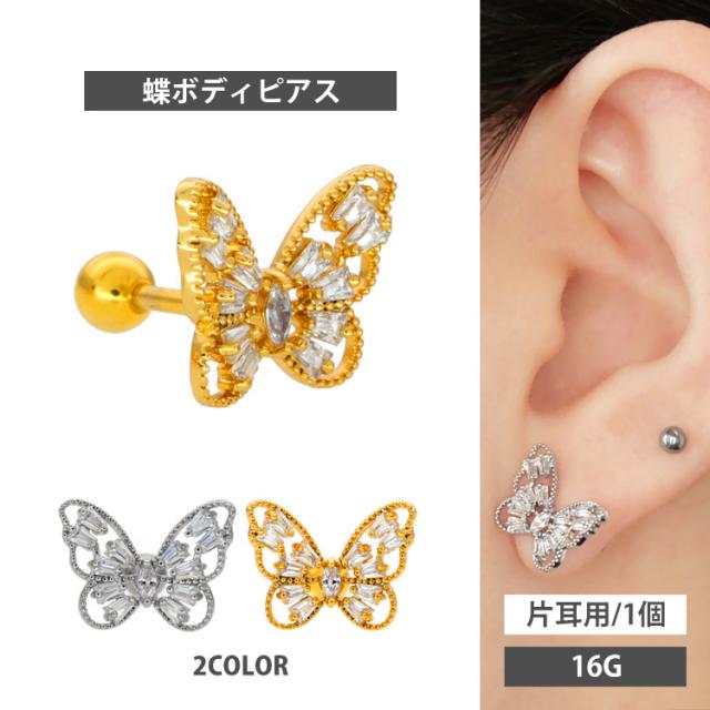 ピアス 軟骨 ボディピアス 透かしジュエルバタフライバーベル 16G ストレートバーベル