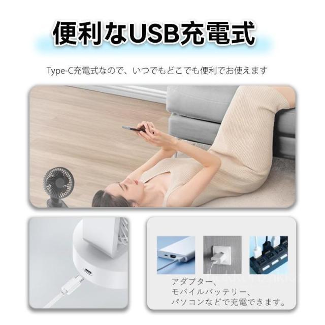 扇風機 卓上 クリップ扇風機 小型 usb 充電式 dcモーター おしゃれ 帯扇風機 強力 ハンディファン 夏 屋外 外出 プレゼント ベビーカー 低騒音 2024新型