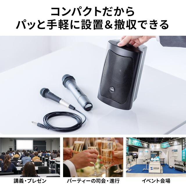 【スピーカー部】●講義や講演、結婚式の2次会やイベントなどに手軽に持ち込み、簡単にセッティングができる拡声器スピーカーとマイクのセットです。