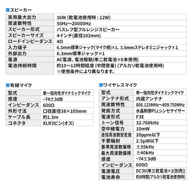 ■実用最大出力:16W(乾電池使用時:12W)