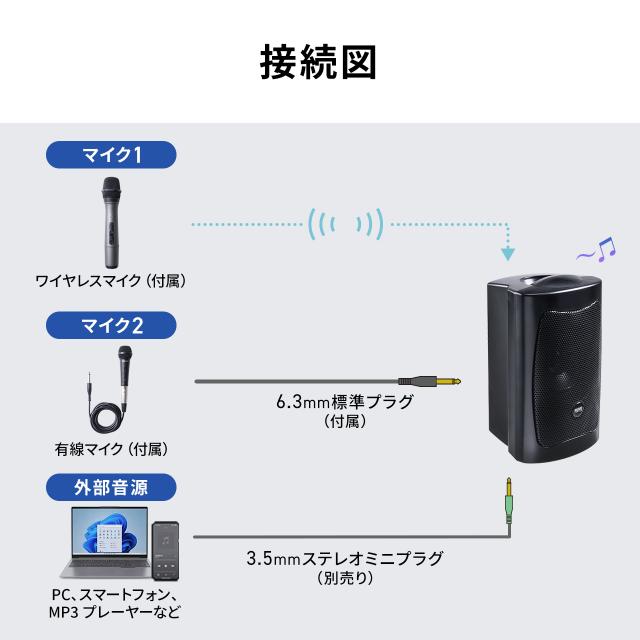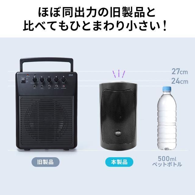 ワイヤレスマイク付 拡声器 スピーカー コンパクト 16W 有線マイク付 充電/コンセント対応 持ち運び[400-SP112]