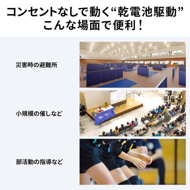 ⇒ご購入の前にご確認下さい会議や講義、イベントなどで手軽に使えるワイヤレスマイク付き拡声器スピーカー。ACアダプタ駆動、乾電池駆動の両方に対応。持ち運びもしやすいバッグと取っ手付き。16W出力の拡声器。【WEB限定商品】