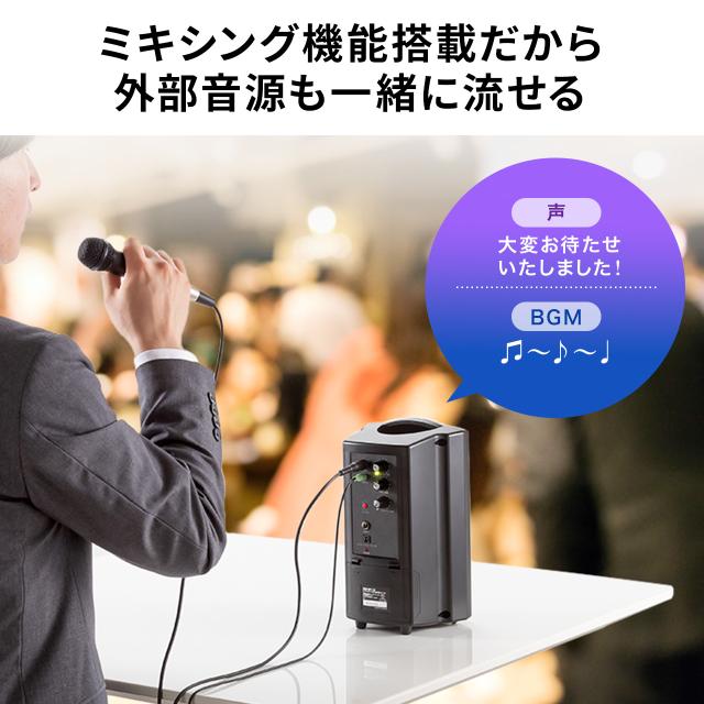 ●マイクミキシング機能を搭載しており、外部入力からの音楽などをスピーカーから出力することができます。