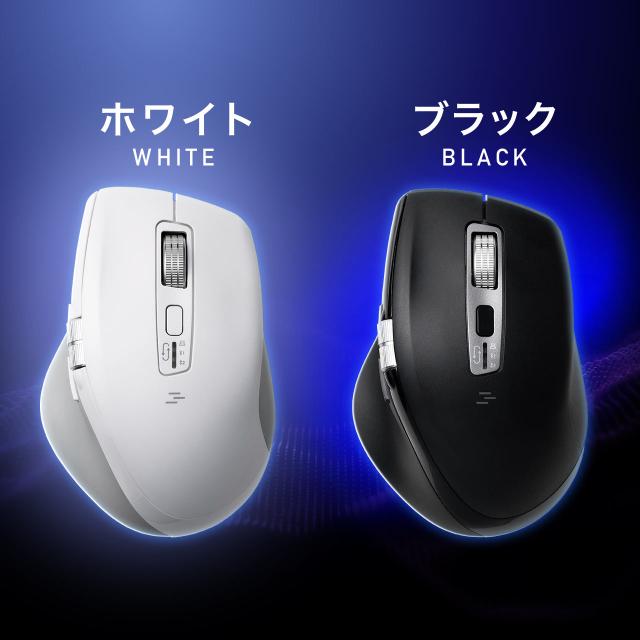 ワイヤレスマウス サイドホイール 高速スクロール Bluetooth 無線 静音 5ボタン ブルーLED マルチペアリング カウント切り替え 左右スクロール Mac対応 戻る 進む 充電式 ブラック ホワイト[400-MAWBT207]