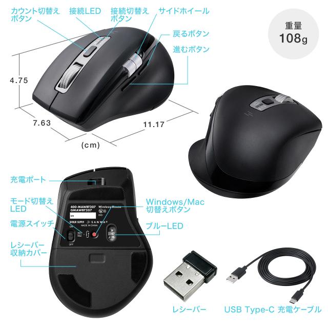 ■カラー:ブラック 400-MAWBT207BK ホワイト 400-MAWBT207W【共通仕様】