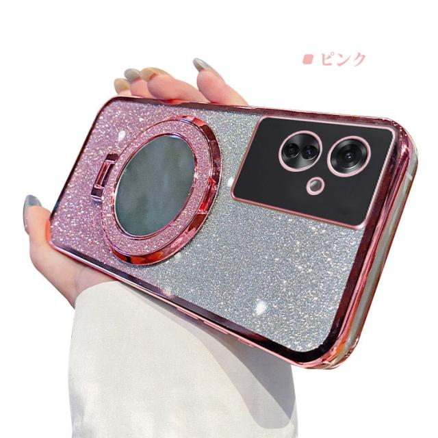 OPPO Reno11 A ケース Reno11 F 5G カバー メッキ TPU ソフトケース 分離型スマホリング付き ミラー付き スタンド機能 Qi充電 ワイヤレス充電 対応 きらきら かわいい グリッター エレガント オッポ リノ11 / リノ11 F 5G アンドロイド おすすめ おしゃれ ストラップ穴