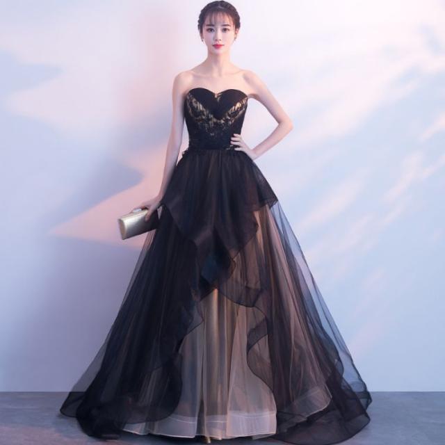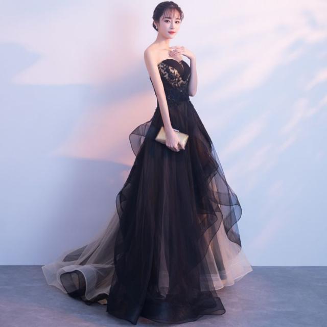 イブニングドレスレディース2024年新品結婚式忘年会レディースエレガントロング黒気質セレブキャットウォークホストドレススカートウェディングドレス