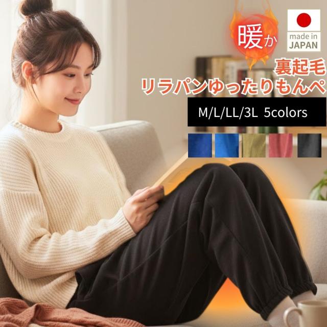 シニアファッション パンツ レディース ズボン 日本製 おばあちゃん 80代 70代 柔らか 裏起毛 レディース パンツ 暖かい もんぺ サルエルパンツ イージーパンツ 3L 大きさイズ 和風 無地 日本製 敬老の日