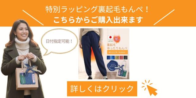 ![]() 重厚感ある プリーツワイドパンツ | ![]() 瞬暖 日本製裏起毛無地もんぺ | ![]() 瞬暖 日本製裏起毛和柄もんぺ |