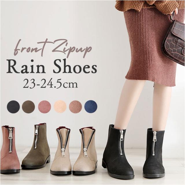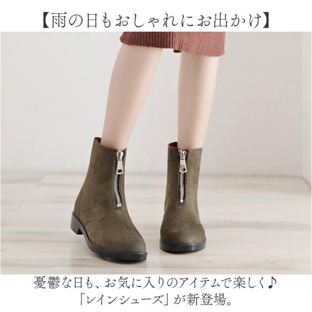 レインブーツ レディース ショート おしゃれ 通販 レインシューズ 長靴 雨靴 ブーツ ショートブーツ かわいい 通勤 通学 雨 梅雨 雪 ジップアップ 前ジッパー 歩きやすい ローヒール