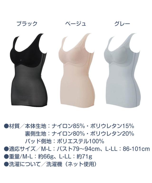 ●適応サイズ/M〜Lサイズ:バスト79〜94cm、ウエスト64〜77cm、L〜LLサイズ:バスト86〜101cm、ウエスト69〜85cm