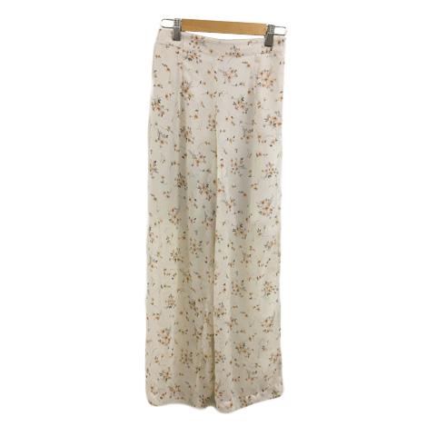 【中古】シーナリー パンツ ストレート ロング 花柄 総柄 ウエストゴム 透け感 シフォン F ベージュ オレンジ