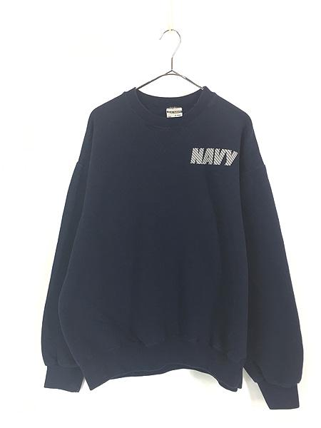 古着 00s USA製 Sofee 「NAVY」 両面 リフレクター ミリタリー スウェット トレーナー L