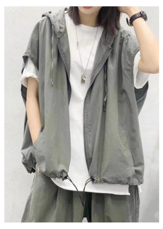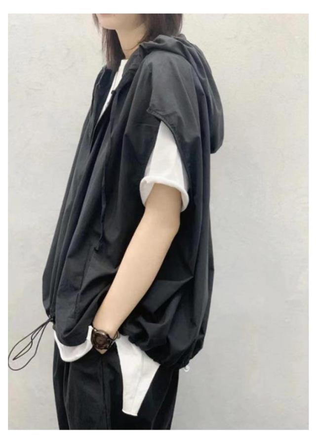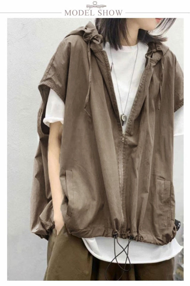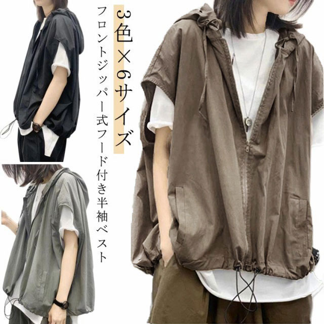 レディース トップス 半袖 夏 きれい とっぷす 半袖 ベスト レディース トップス 夏 体型カバー フード付きジレ ゆったり フード パーカー レディース 半袖パーカー 前開き 送料無料 トップス 涼しい 春夏 ジップアップ アウター 切り替え