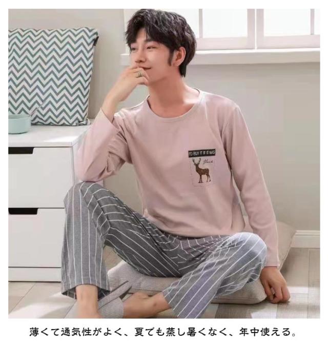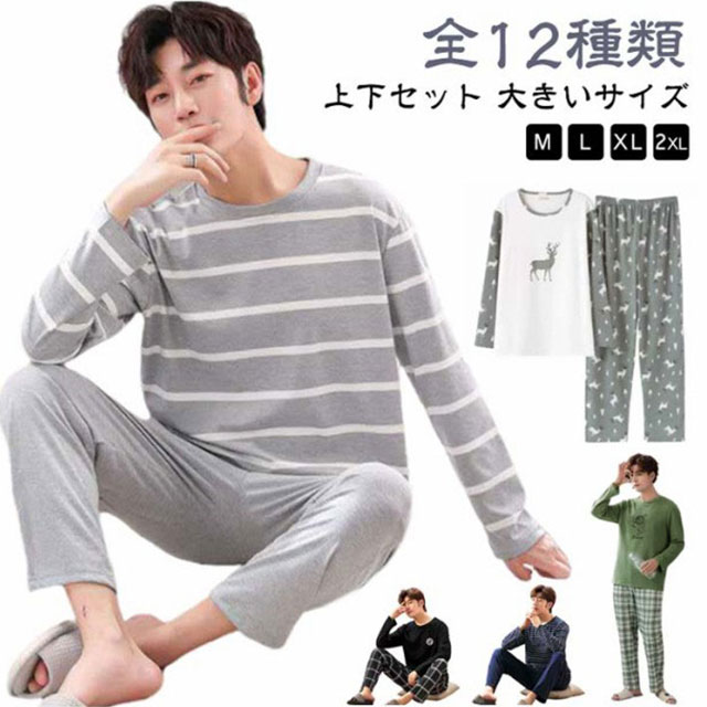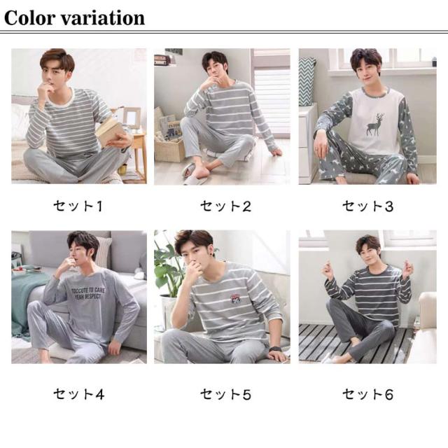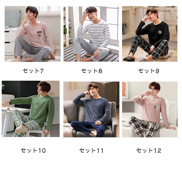 | 【全12種類】【上下セット】【M-XXL】 長袖Tシャツ・長ズボンの上下セットのパジャマ。 やわらかく、肌触りが良い生地です。リラックスできる着心地です。 薄手のTシャツ生地で、柔らかい風合いが爽やかで心地よいパジャマです。 薄くて通気性がよく、夏でも蒸し暑くなく、年中使える。 お部屋でのリラックスタイムや、ルームウェアや部屋着・パジャマとしてぴったり! | |