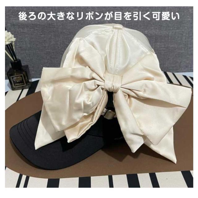 りぼん キャップ 帽子 深め リボン レディース帽子 春 帽子 夏 春夏 ベースボールキャップ 無地 UVカット 女子 通学 日焼け防止 コーデ ママ 日よけ レディースキャップ ビッグリボン おでかけ カジュアル トレンド キャップ 黒 白 ベージュ